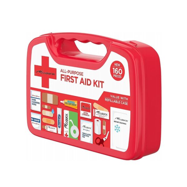 Including essential first aid supplies like cleansing wipes, gauze pads, assorted bandages, rolled gauze, antibiotic cream, itch stopping cream, an instant cold pack. Products such as gauze, non-stick pads & tape for larger minor wounds, all organized in a durable & accessible box.